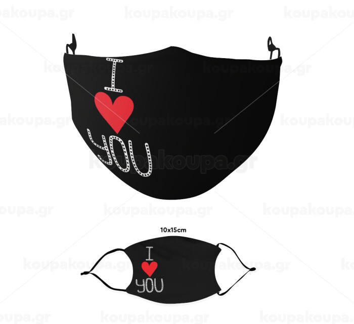 I Love You small dots, Μάσκα υφασμάτινη παιδική πολλαπλών στρώσεων με υποδοχή φίλτρου