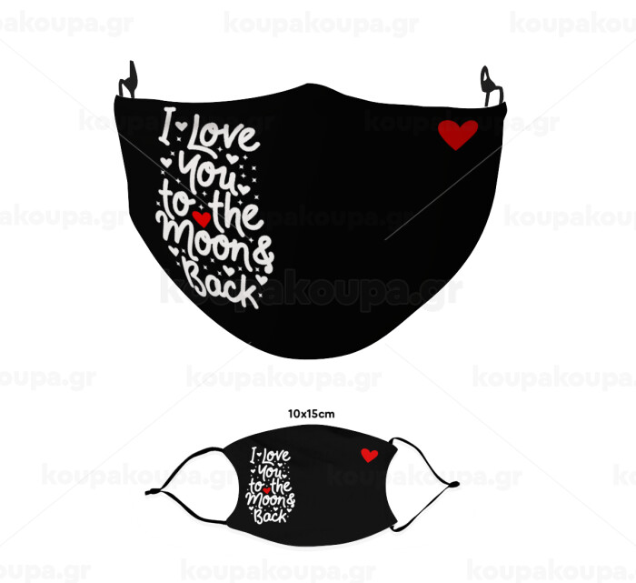 I love you to the moon and back with hearts, Μάσκα υφασμάτινη παιδική πολλαπλών στρώσεων με υποδοχή φίλτρου