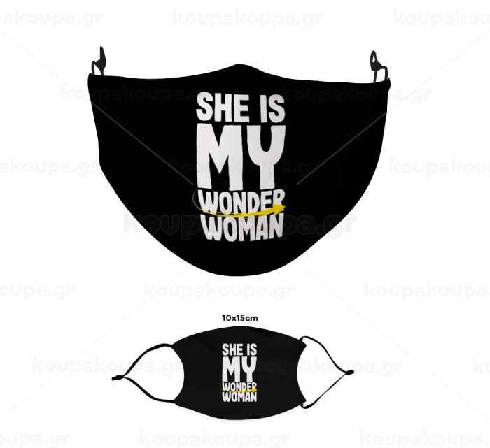 She is my wonder woman, Μάσκα υφασμάτινη παιδική πολλαπλών στρώσεων με υποδοχή φίλτρου