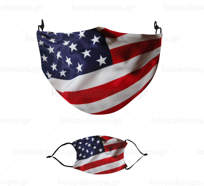 USA Flag, Μάσκα υφασμάτινη παιδική πολλαπλών στρώσεων με υποδοχή φίλτρου