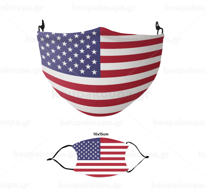 USA Flag, Μάσκα υφασμάτινη παιδική πολλαπλών στρώσεων με υποδοχή φίλτρου