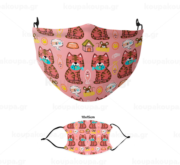 Cats and Fishes, Μάσκα υφασμάτινη παιδική πολλαπλών στρώσεων με υποδοχή φίλτρου
