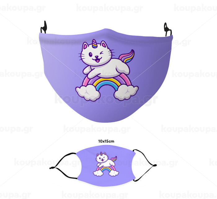 Cute cat unicorn, Μάσκα υφασμάτινη παιδική πολλαπλών στρώσεων με υποδοχή φίλτρου
