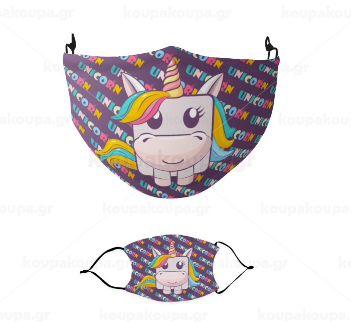 Unicorns cube, Μάσκα υφασμάτινη παιδική πολλαπλών στρώσεων με υποδοχή φίλτρου