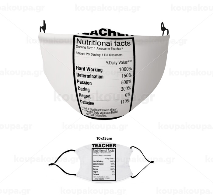 teacher nutritional facts, Μάσκα υφασμάτινη παιδική πολλαπλών στρώσεων με υποδοχή φίλτρου
