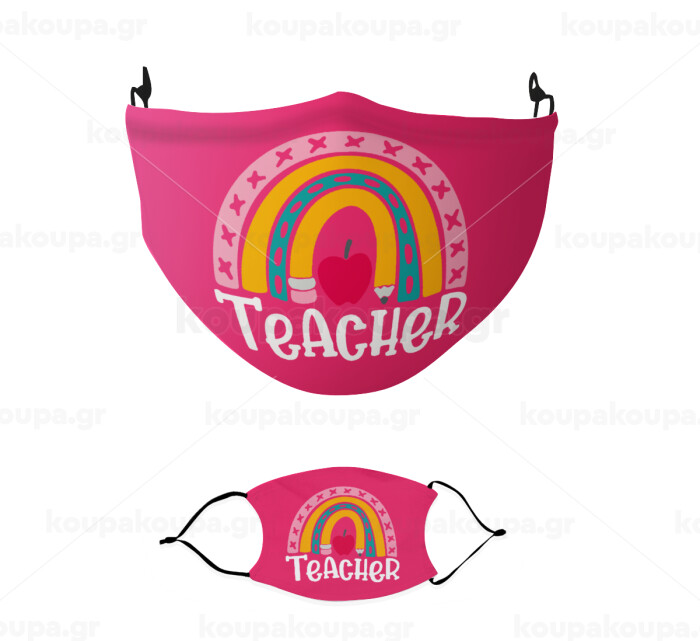 Rainbow teacher, Μάσκα υφασμάτινη παιδική πολλαπλών στρώσεων με υποδοχή φίλτρου