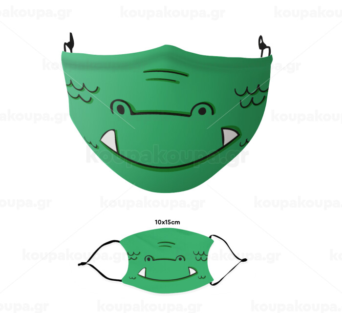 Παδικό σχέδιο ζωάκι crocodile , Μάσκα υφασμάτινη παιδική πολλαπλών στρώσεων με υποδοχή φίλτρου