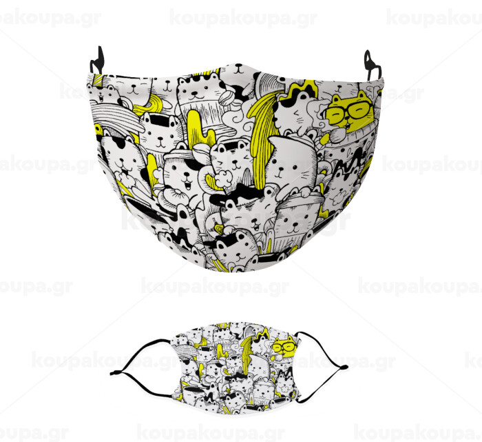 Doodle cats, Μάσκα υφασμάτινη παιδική πολλαπλών στρώσεων με υποδοχή φίλτρου