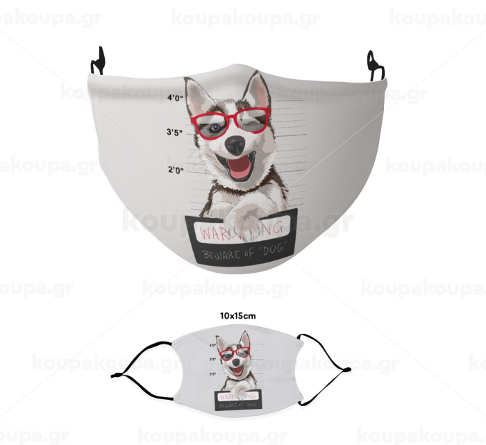 Warning, beware of Dog, Μάσκα υφασμάτινη παιδική πολλαπλών στρώσεων με υποδοχή φίλτρου