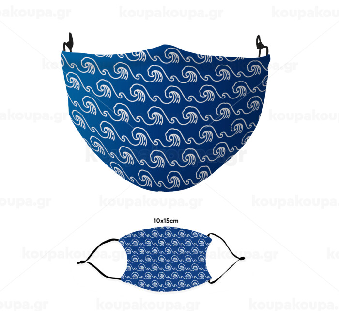 Blue Waves, Μάσκα υφασμάτινη παιδική πολλαπλών στρώσεων με υποδοχή φίλτρου