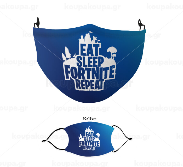 Eat Sleep Fortnite Repeat, Μάσκα υφασμάτινη παιδική πολλαπλών στρώσεων με υποδοχή φίλτρου