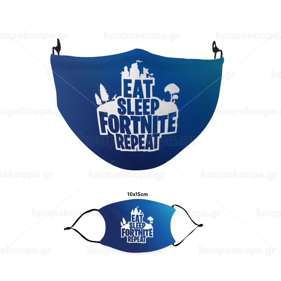 Eat Sleep Fortnite Repeat, Μάσκα υφασμάτινη παιδική πολλαπλών στρώσεων με υποδοχή φίλτρου