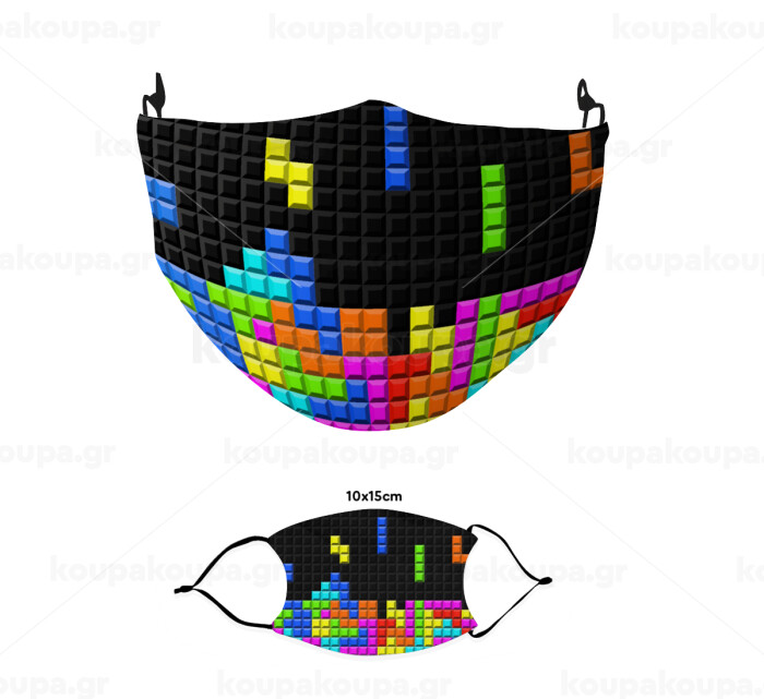 Tetris blocks, Μάσκα υφασμάτινη παιδική πολλαπλών στρώσεων με υποδοχή φίλτρου
