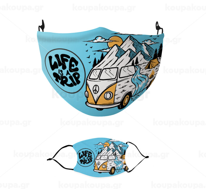 Life is a trip, Μάσκα υφασμάτινη παιδική πολλαπλών στρώσεων με υποδοχή φίλτρου