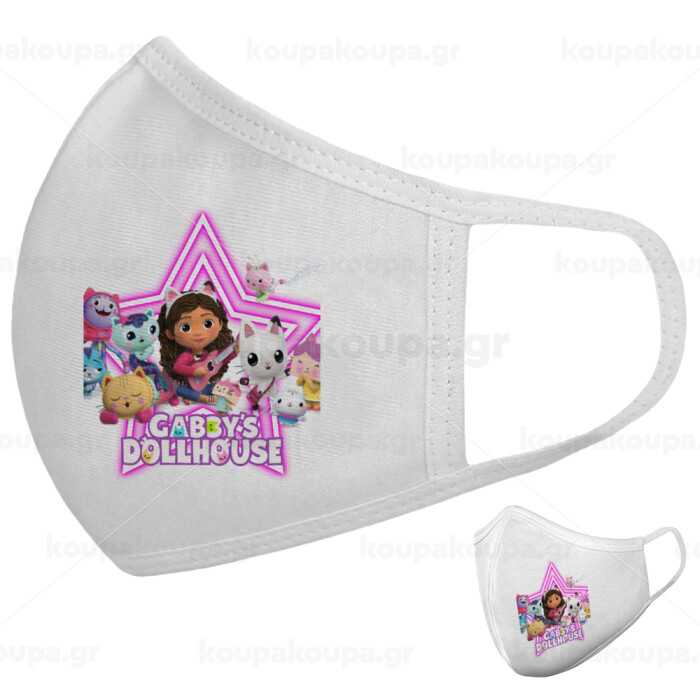 Gabby Dollhouse, Μάσκα υφασμάτινη υψηλής άνεσης παιδική (Δώρο πλαστική θήκη)