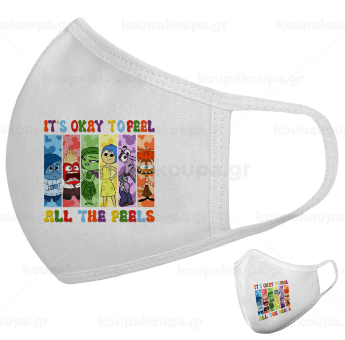 Inside Out It's Okay To Feel All The Feels , Μάσκα υφασμάτινη υψηλής άνεσης παιδική (Δώρο πλαστική θήκη)
