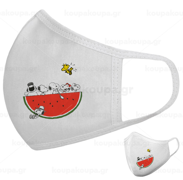 Snoopy summer, Μάσκα υφασμάτινη υψηλής άνεσης παιδική (Δώρο πλαστική θήκη)