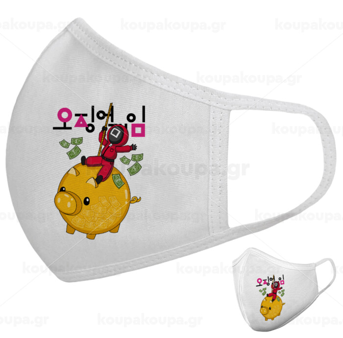 Squid game money pig, Μάσκα υφασμάτινη υψηλής άνεσης παιδική (Δώρο πλαστική θήκη)