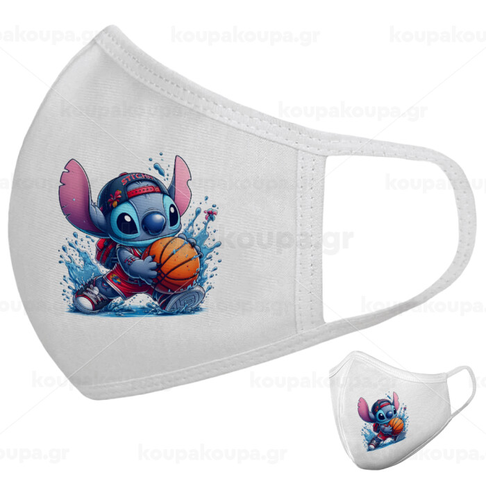 Stitch Basketball, Μάσκα υφασμάτινη υψηλής άνεσης παιδική (Δώρο πλαστική θήκη)