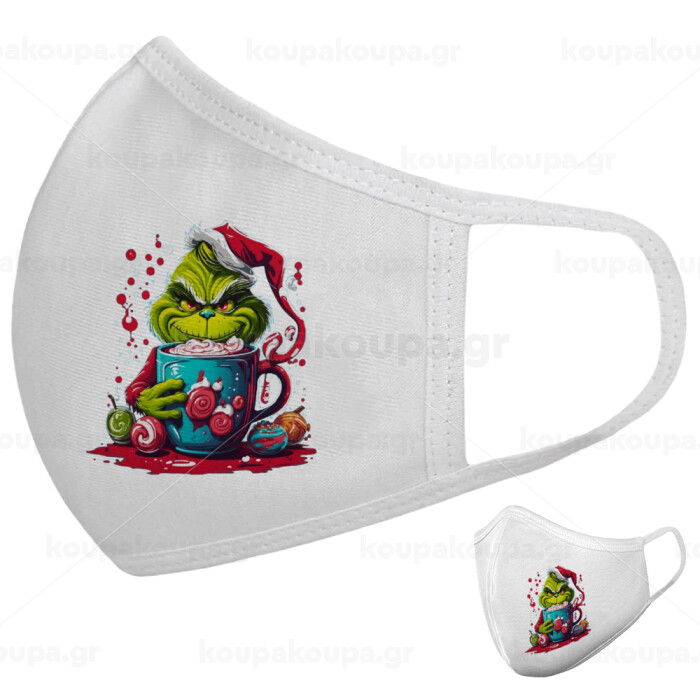 Giggling Grinchy Galore, Μάσκα υφασμάτινη υψηλής άνεσης παιδική (Δώρο πλαστική θήκη)