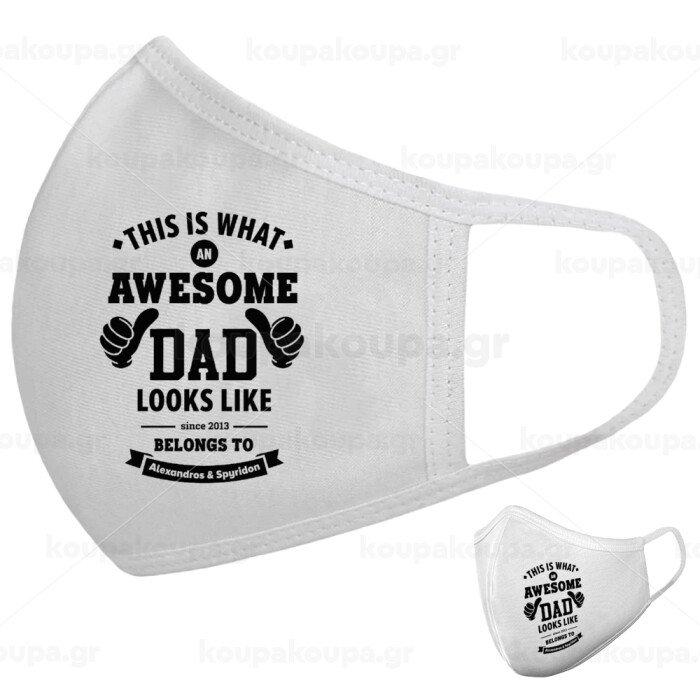 This is what an Awesome DAD looks like, Μάσκα υφασμάτινη υψηλής άνεσης παιδική (Δώρο πλαστική θήκη)