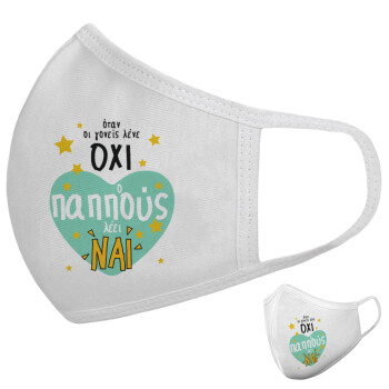Όταν οι γονείς λένε ΟΧΙ, ο παππούς λέει ΝΑΙ, Μάσκα υφασμάτινη υψηλής άνεσης παιδική (Δώρο πλαστική θήκη)