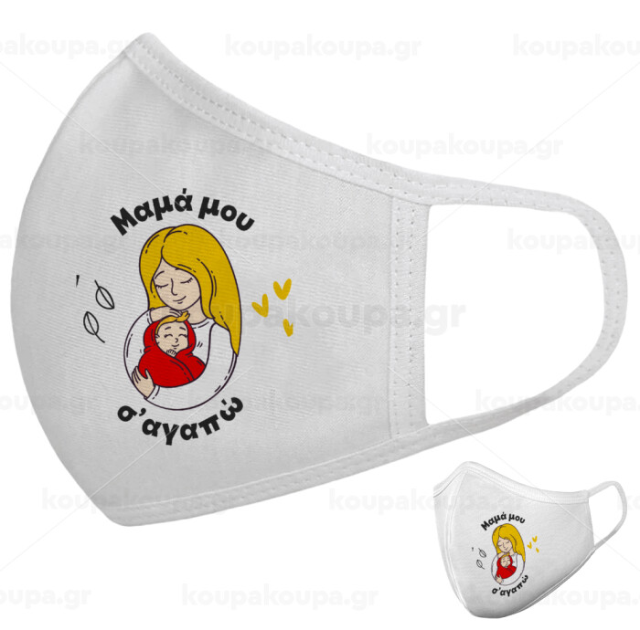 Μανούλα σ'αγαπώ αγκαλιά!, Μάσκα υφασμάτινη υψηλής άνεσης παιδική (Δώρο πλαστική θήκη)