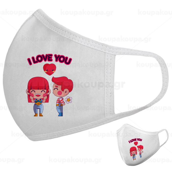 Couple, I love you, Μάσκα υφασμάτινη υψηλής άνεσης παιδική (Δώρο πλαστική θήκη)