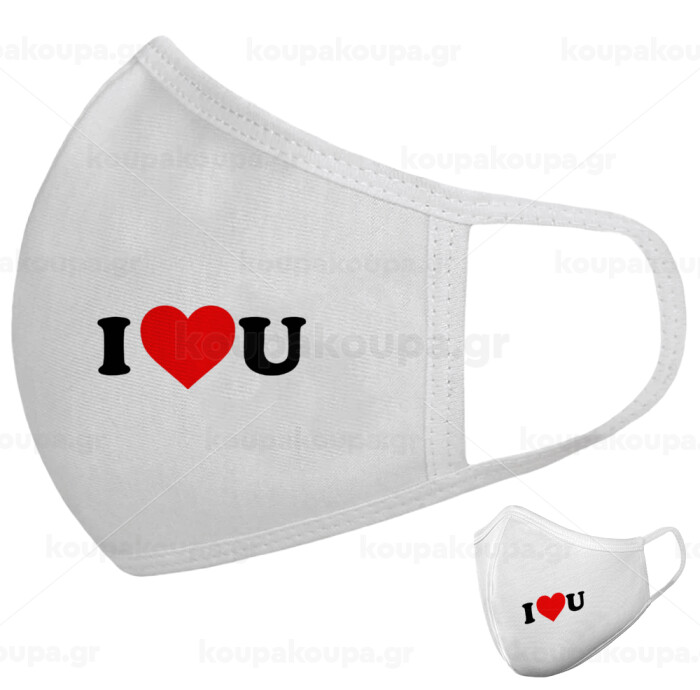 I ❤️ U, Μάσκα υφασμάτινη υψηλής άνεσης παιδική (Δώρο πλαστική θήκη)