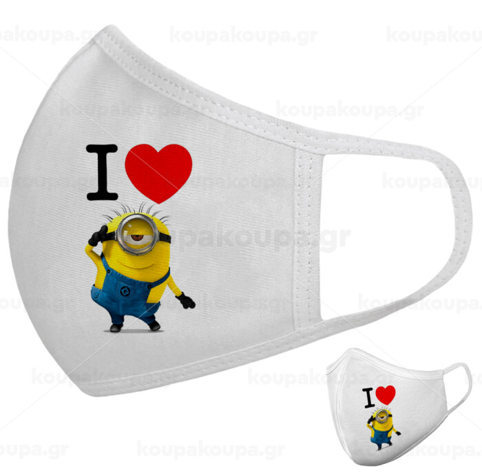 I love by minion, Μάσκα υφασμάτινη υψηλής άνεσης παιδική (Δώρο πλαστική θήκη)