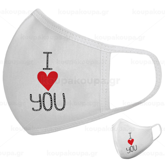 I Love You small dots, Μάσκα υφασμάτινη υψηλής άνεσης παιδική (Δώρο πλαστική θήκη)