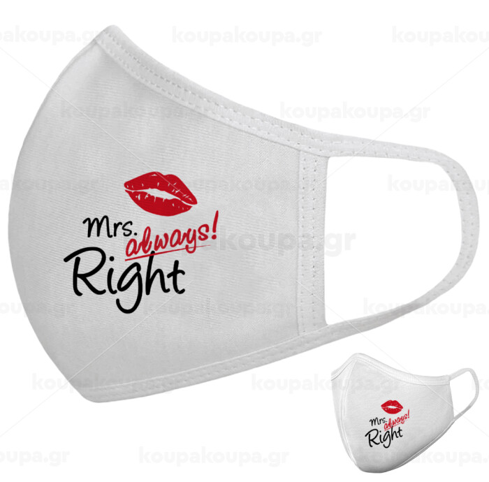 Mrs always right kiss, Μάσκα υφασμάτινη υψηλής άνεσης παιδική (Δώρο πλαστική θήκη)