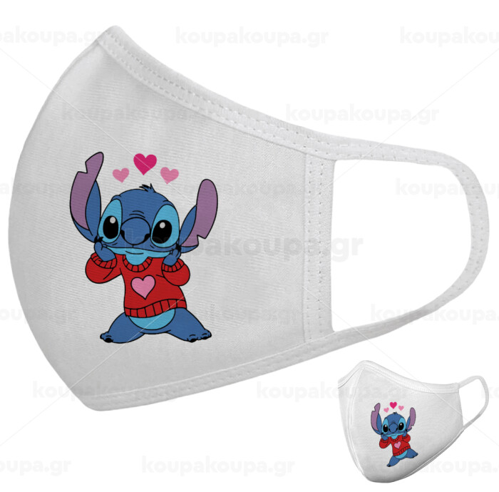Stitch heart, Μάσκα υφασμάτινη υψηλής άνεσης παιδική (Δώρο πλαστική θήκη)