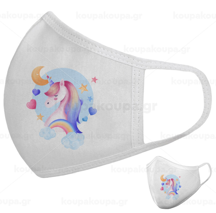 Cute unicorn, Μάσκα υφασμάτινη υψηλής άνεσης παιδική (Δώρο πλαστική θήκη)