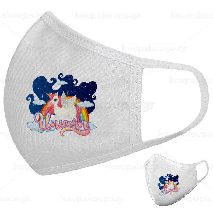 Μονόκερος, Μάσκα υφασμάτινη υψηλής άνεσης παιδική (Δώρο πλαστική θήκη)