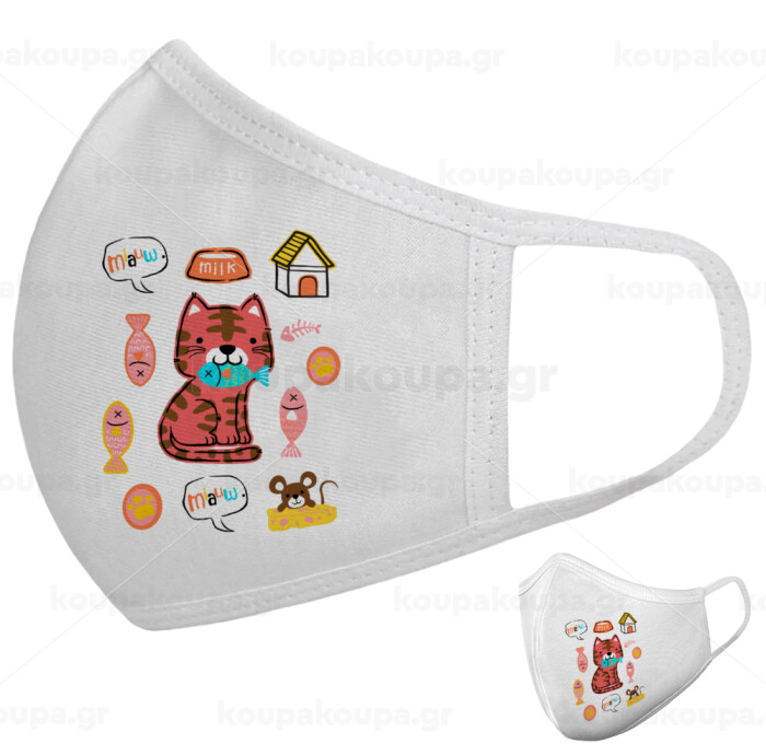 Cats and Fishes, Μάσκα υφασμάτινη υψηλής άνεσης παιδική (Δώρο πλαστική θήκη)
