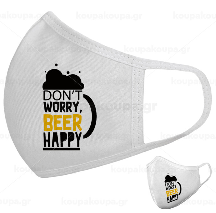 Don't worry BEER Happy, Μάσκα υφασμάτινη υψηλής άνεσης παιδική (Δώρο πλαστική θήκη)