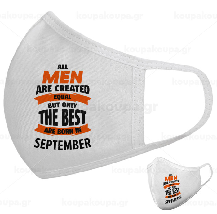 All men are created equal but only the best are born in September, Μάσκα υφασμάτινη υψηλής άνεσης παιδική (Δώρο πλαστική θήκη)