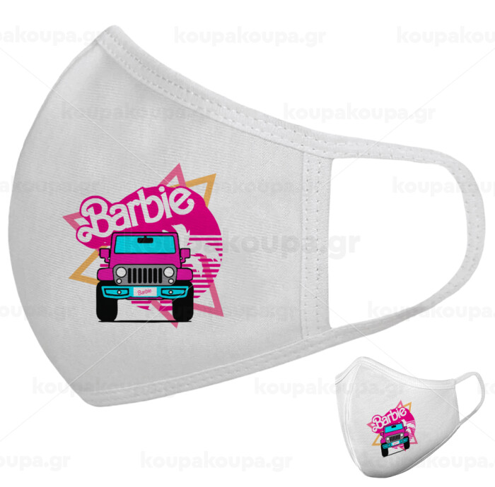 Barbie car, Μάσκα υφασμάτινη υψηλής άνεσης παιδική (Δώρο πλαστική θήκη)
