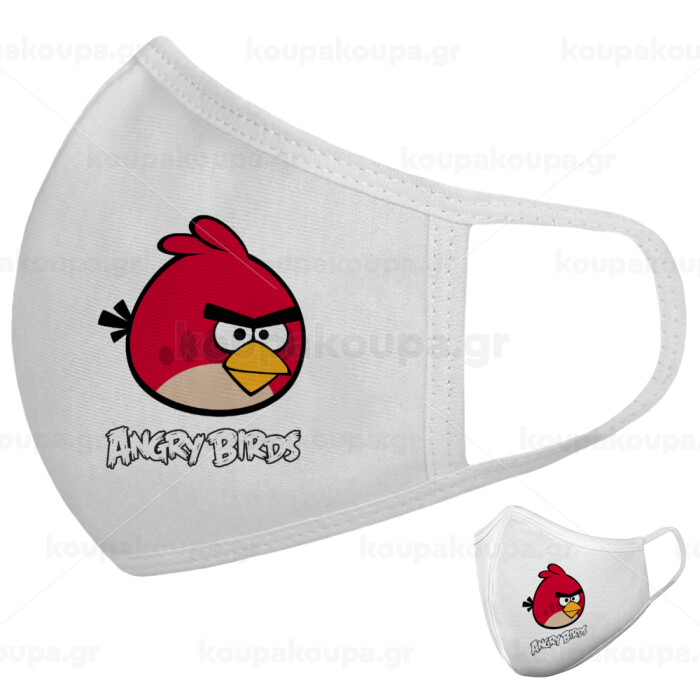 Angry birds Terence, Μάσκα υφασμάτινη υψηλής άνεσης παιδική (Δώρο πλαστική θήκη)