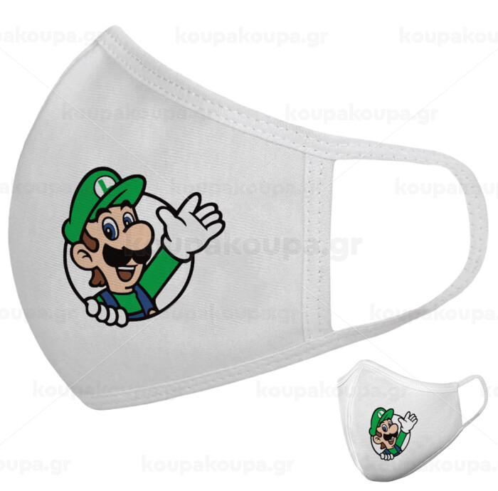 Super mario Luigi win, Μάσκα υφασμάτινη υψηλής άνεσης παιδική (Δώρο πλαστική θήκη)