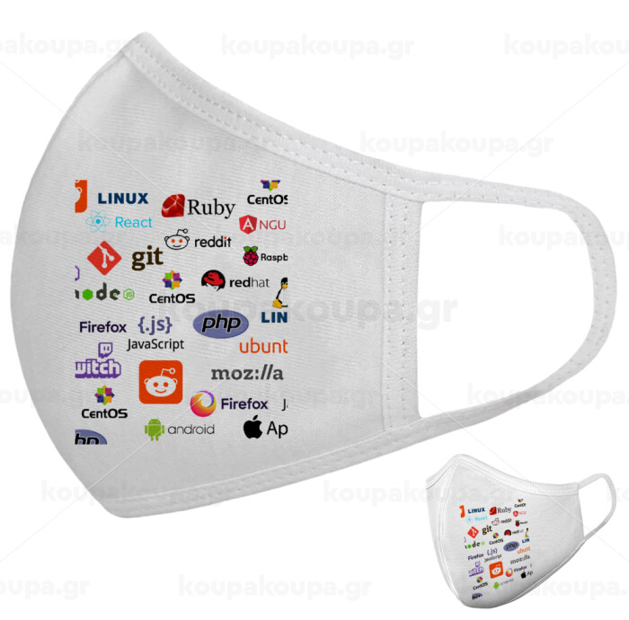 Tech logos, Μάσκα υφασμάτινη υψηλής άνεσης παιδική (Δώρο πλαστική θήκη)