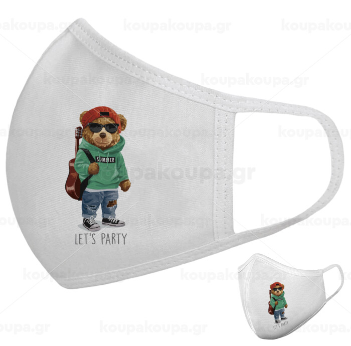Let's Party Bear, Μάσκα υφασμάτινη υψηλής άνεσης παιδική (Δώρο πλαστική θήκη)