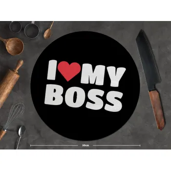 I LOVE MY BOSS, Επιφάνεια κοπής γυάλινη στρογγυλή (30cm)