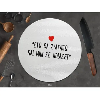 ΕΓΩ ΘΑ Σ’ΑΓΑΠΩ ΚΑΙ ΜΗΝ ΣΕ ΝΟΙΑΖΕΙ..., Επιφάνεια κοπής γυάλινη στρογγυλή (30cm)