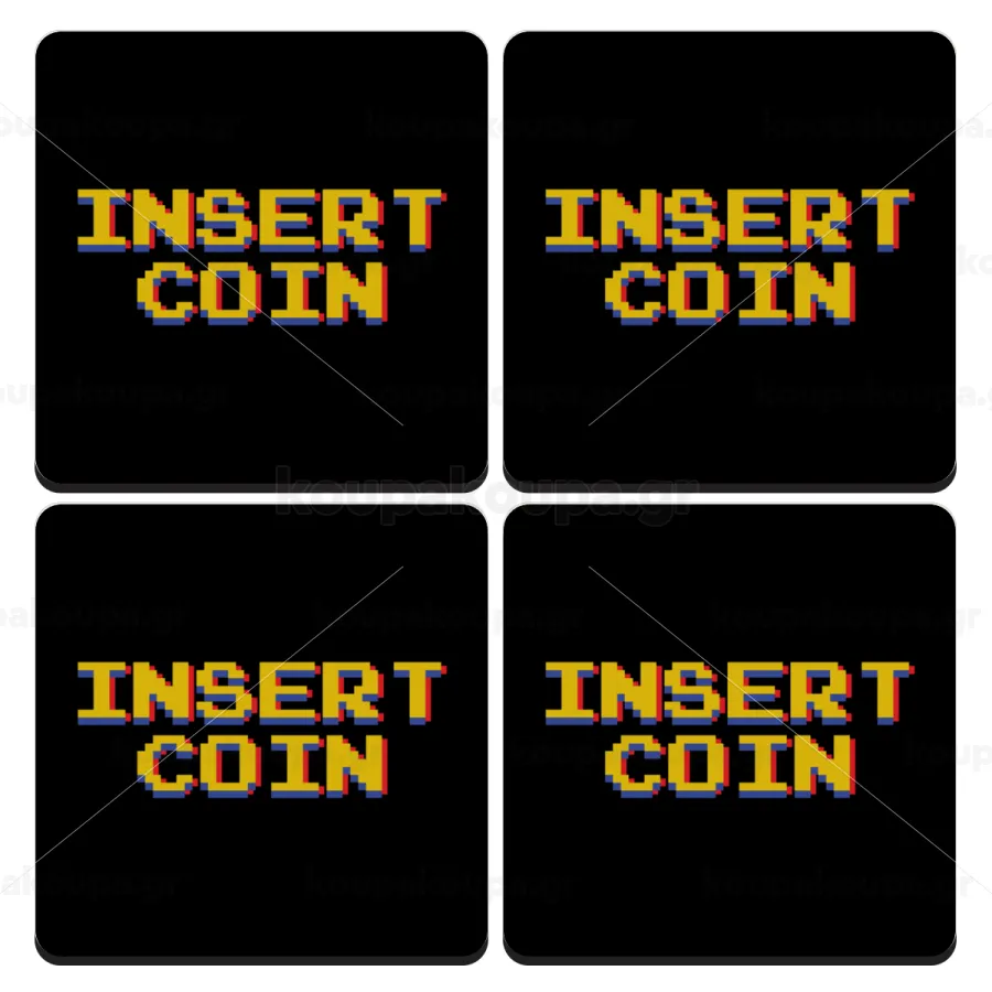 Insert coin!!!, ΣΕΤ 4 Σουβέρ ξύλινα τετράγωνα (9cm)