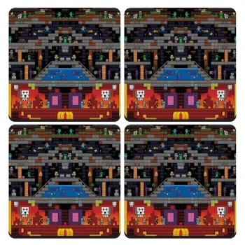 Minecraft 2D map, ΣΕΤ 4 Σουβέρ ξύλινα τετράγωνα (9cm)