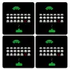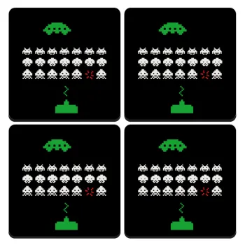 Space invaders, ΣΕΤ 4 Σουβέρ ξύλινα τετράγωνα (9cm)