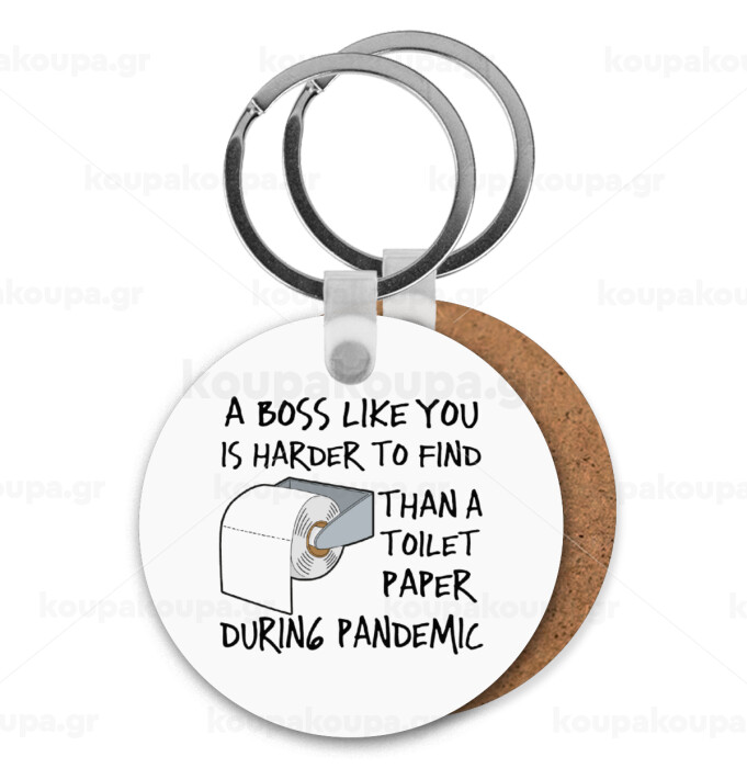 A boss like you is harder to find, than a toilet paper during pandemic, Μπρελόκ Ξύλινο στρογγυλό MDF Φ5cm