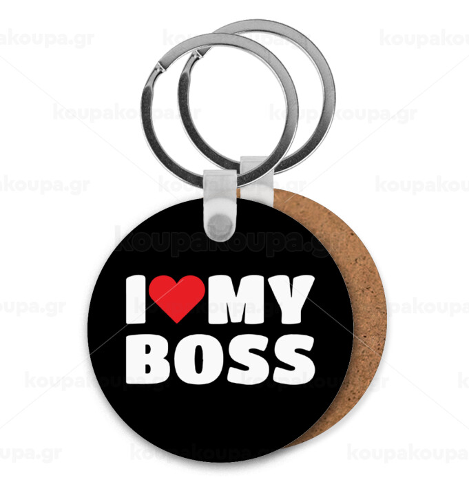 I LOVE MY BOSS, Μπρελόκ Ξύλινο στρογγυλό MDF Φ5cm